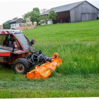 Односторонняя муфта встроена в угловой редуктор • Регулировка высоты кошения при помощи копирующего вала • Полозья из высокопрочной стали • Регулируемые опорные стопы • Сменные, регулируемые (перед-зад) противоножи • Шарнирно-телескопический вал • Автоматическое натяжение клиновых ремней • Защитные пластины • Механическое смещение